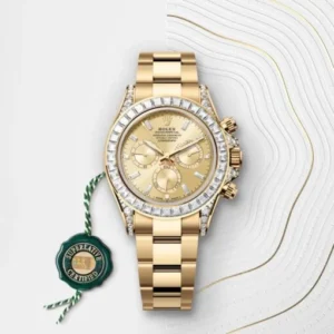 The Daytona Oyster is powered by one of Rolex’s innovative movements, guaranteeing optimal performance and reliability for years to come. Enhanced by its waterproof technology and resilient sapphire crystal, this watch is designed to withstand the rigors of everyday use while maintaining its impeccable appearance. Whether you’re diving into professional commitments or embarking on leisure adventures, the Rolex Cosmograph Daytona Oyster remains a steadfast accessory.